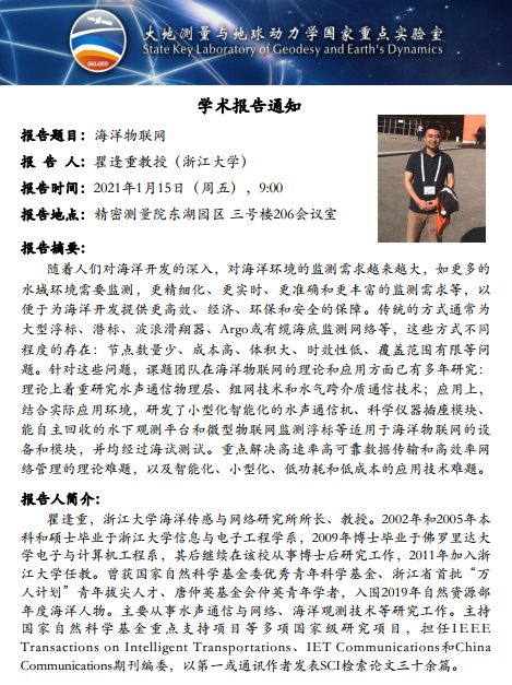 2021年1月15日PA真人视讯大地测量与地球动力学国家重点实验室学术预告