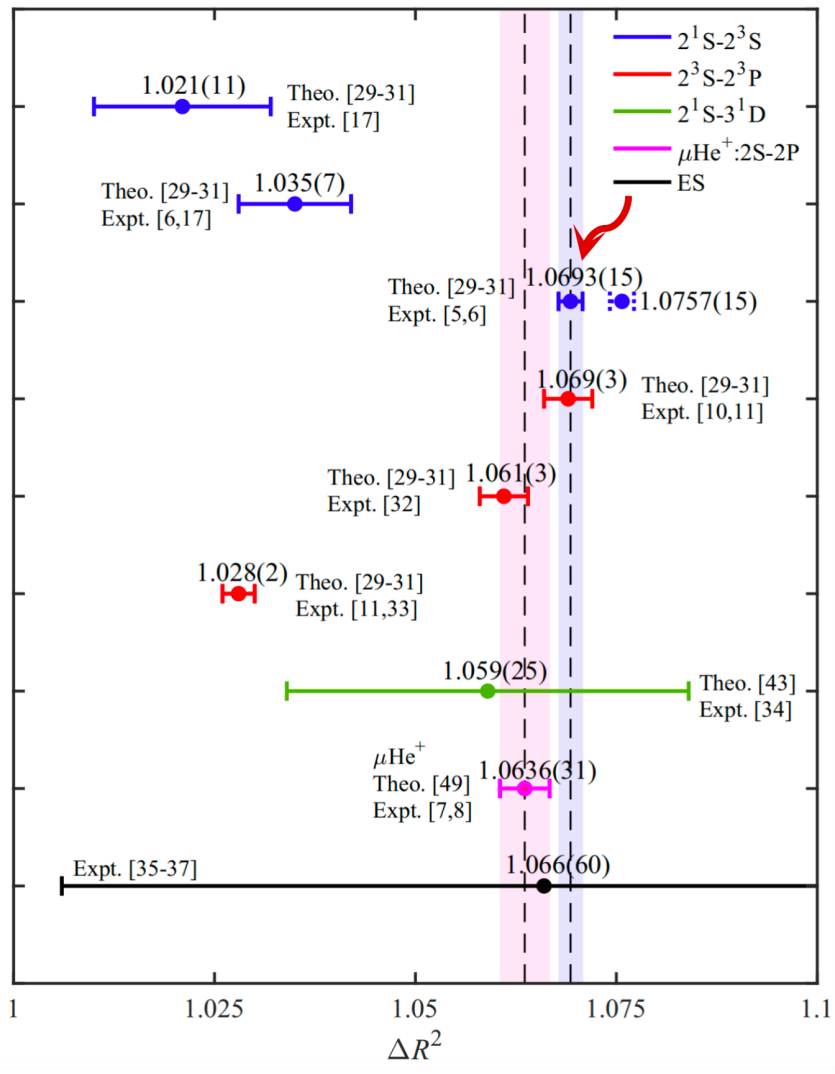 近期,PA真人视讯原子分子外场理论研究团队联合加拿大新不伦瑞克大学、浙江理工大学、海南大学等科研组织,在氦原子同位素位移研究方面取得重要进展,成功解决了“氦原子核电荷半径方差之谜”。